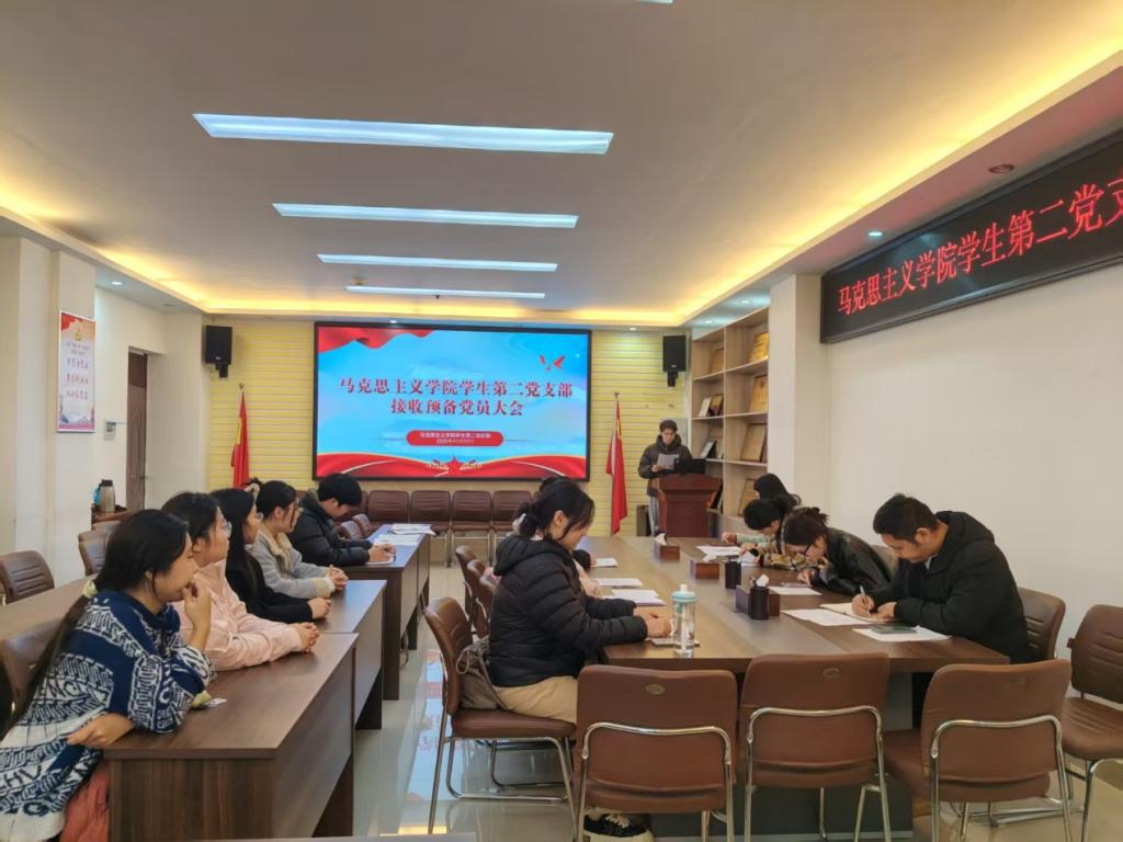 2025年11月17日下午,中共信阳师范大学星空XK学生第二党支部委员会在社科楼323召开了2025年下半年接收预备党员支部大会。星空官网学生第二党支部书记任婷,学生第二党支部全体党员、预备党员和党员发展对象共同参加此次会议。会议由任婷同志主持。