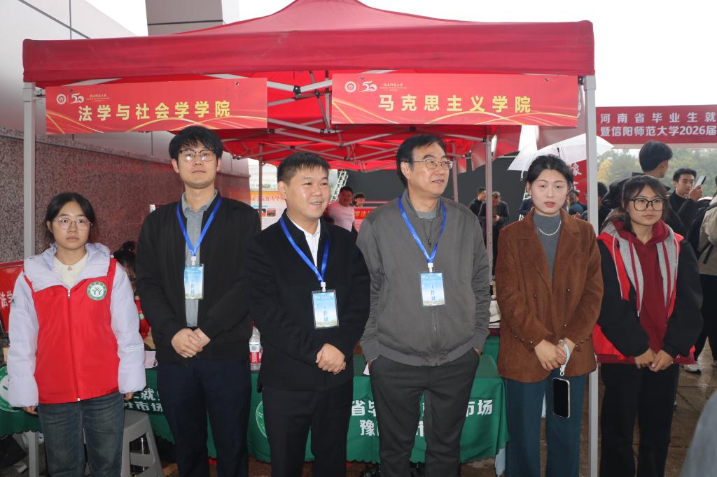 11月7日,河南省毕业生就业市场豫南分市场暨信阳师范大学2025届毕业生秋季双向选择洽谈会在体育馆举行。星空XK党委副书记王超、副院长周智及就业秘书沈海蓄、杨春艳老师现场指导,为毕业生求职提供支持。