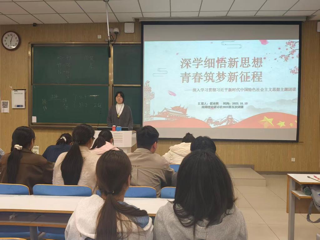 为推动习近平新时代中国特色社会主义思想在青年群体中入脑入心,引导团员青年明晰时代使命、校准奋斗方向,10月15日18时,南湖理论研讨社在社科楼515教室成功举办“深学细悟新思想,青春筑梦新征程”主题团课,全体成员积极参与。