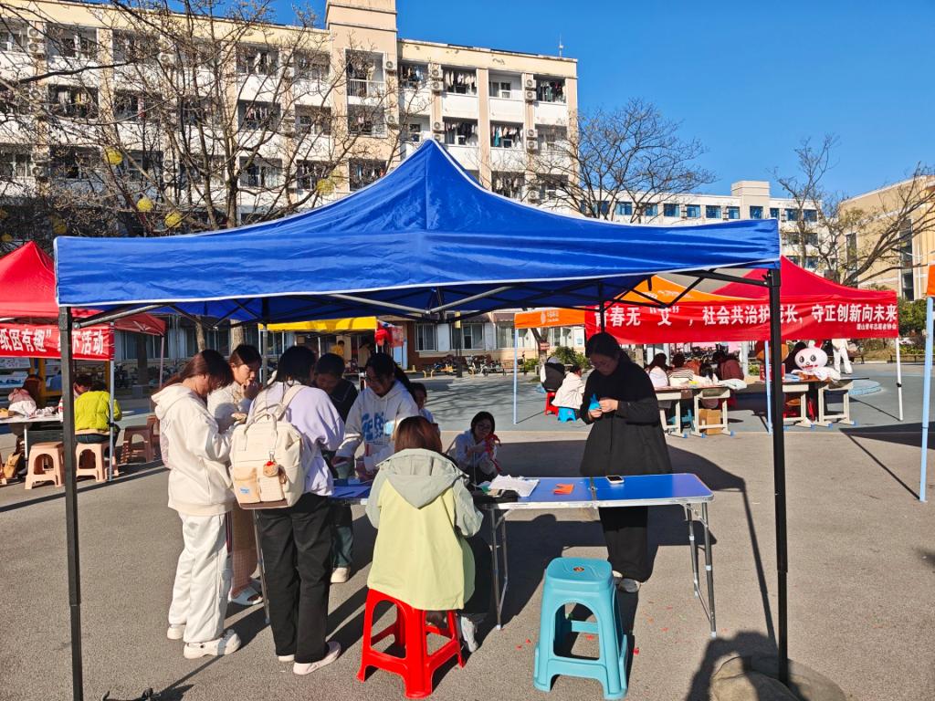 手工剪纸作为中国传统民间艺术的璀璨瑰宝,承载着千年文化底蕴与浓厚人文关怀。为弘扬“奉献、友爱、互助、进步”的精神,信阳师范大学南湖理论研讨社于2025年11月29日至11月30日在心语广场举办“指尖生花,情暖童心”女生月手工公益剪纸活动。