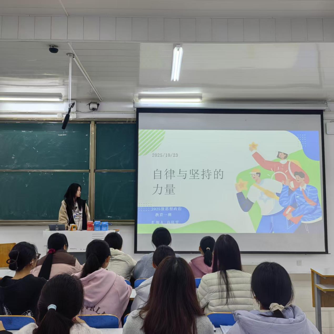 为破解开学初期“目标难落地,行动难坚持”的困境,强化同学们的自律意识,10月24日上午,星空XK2025级思想政治教育一班于社科楼515开展“自律促进步,坚持见成效”主题班会。本次班会由班长高依雯主持,班级全体同学参加。