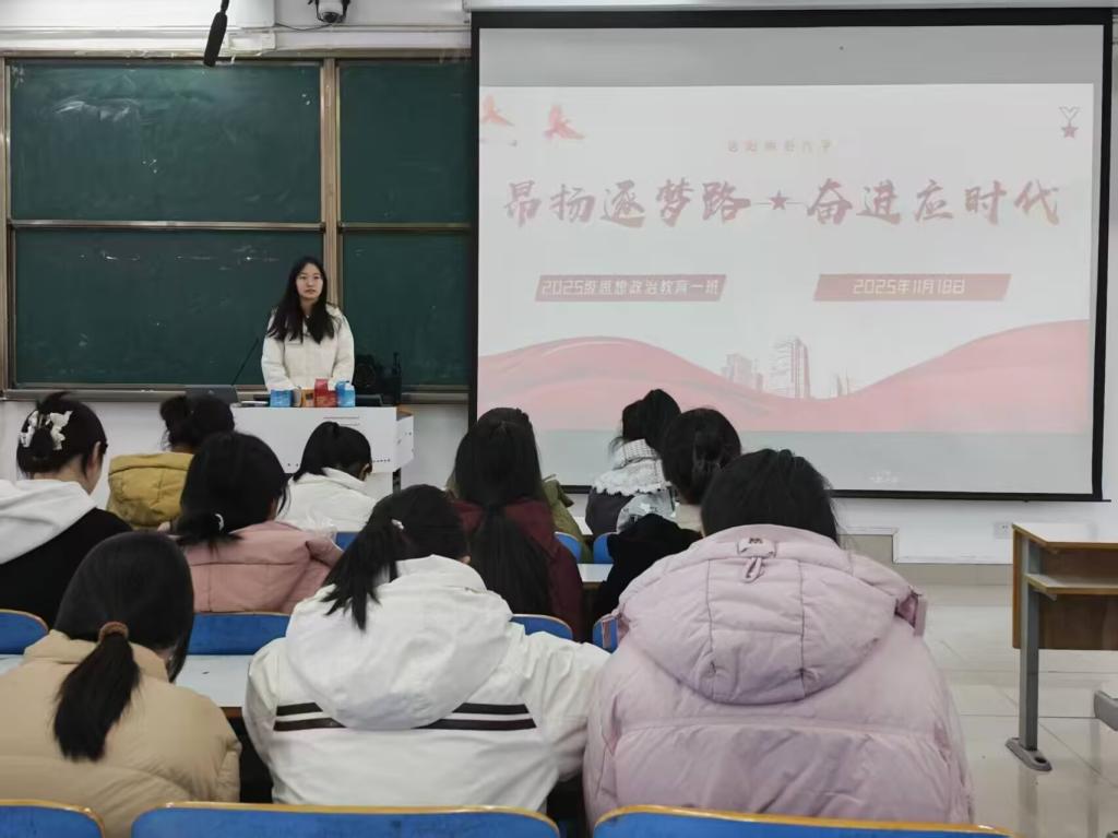 为引导青年学子将个人理想融入时代发展洪流,11月18日下午,星空XK思想政治教育一班于社科楼514教室开展“昂扬逐梦路,奋进应时代”主题团课。本次团课由团支书宋晓然主持,班级全体同学参加。