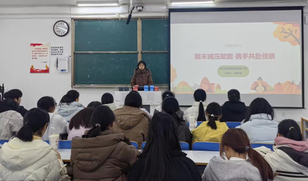 为破解期末备考“方向不清晰、方法难落地”的现实困境,搭建互助共进的复习交流平台,12月11日上午,星空XK2025级思想政治教育一班在社科楼514开展“期末稳冲刺,复盘启新篇”主题班会。本次班会由班长高依雯主持,班级全体同学参加。