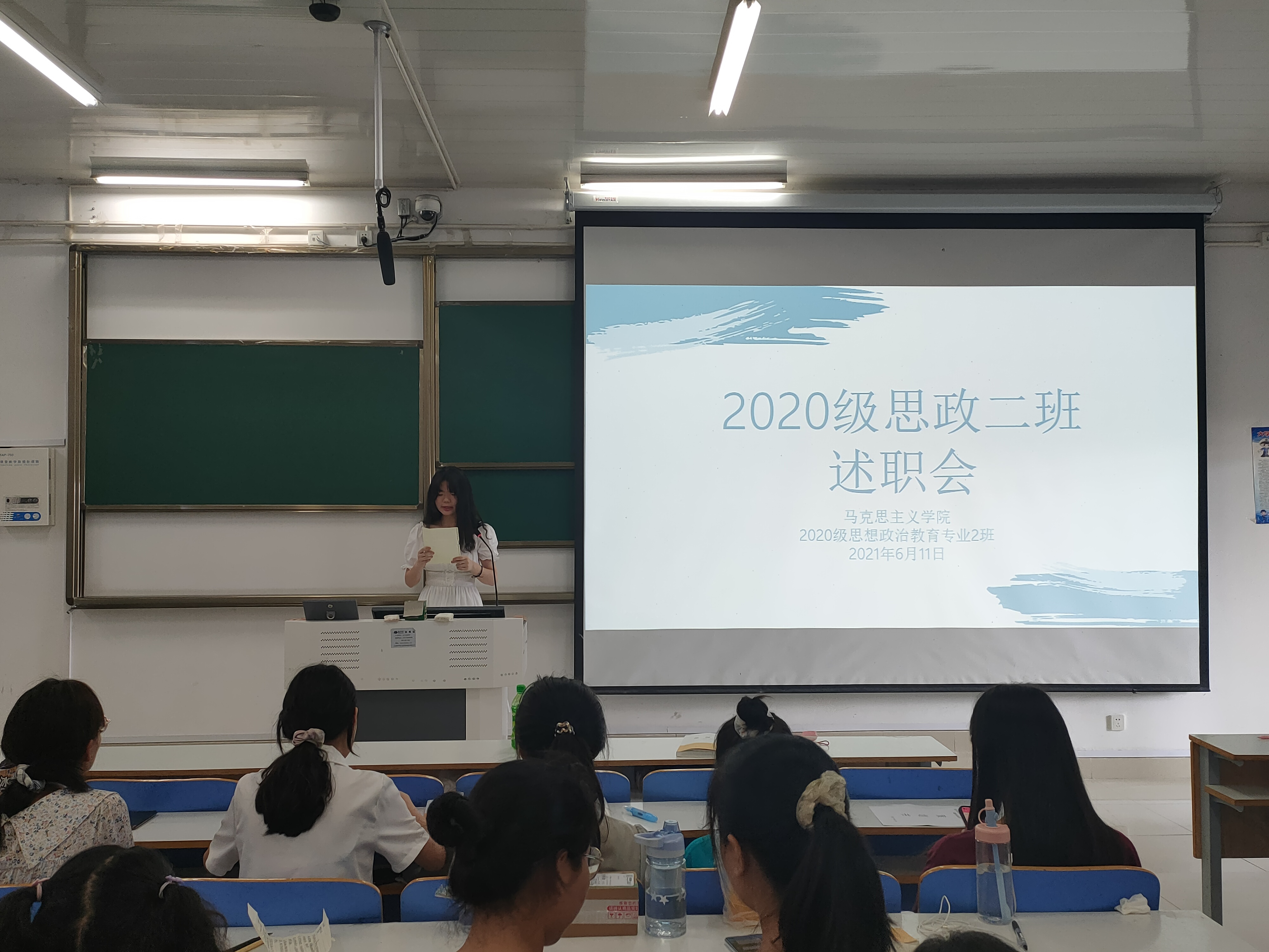 为增进我班同学对班委工作情况的了解,6月11日下午,星空XK2020级思想政治教育二班、定向二班班委述职大会在社科楼514教室顺利召开。二班、定向二班全体同学共同参与大会。大会由班长李晨曦主持。