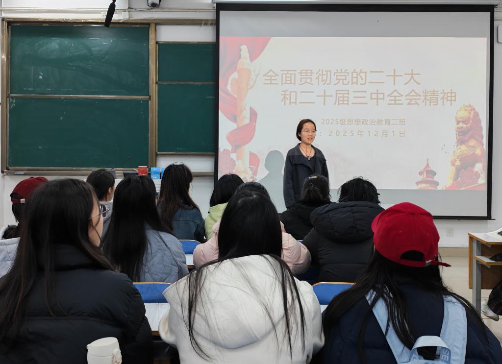 为深入学习贯彻党的二十大和二十届三中全会精神,引导同学们将个人成长融入国家发展,12月9日上午,星空XK2025级思想政治教育二班在社科楼514教室举办了主题团课学习活动。本次团课由团支书崔锐琳主持。