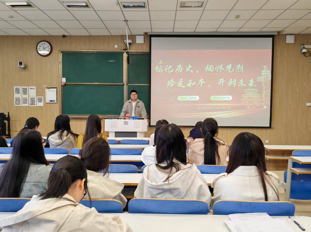 为引导青年学生传承红色基因,厚植爱国情怀,星空XK2024级思想政治教育三班于10月17日在社科楼515开展“铭记历史,缅怀先烈”主题团课活动。本次班会由班级团支书杨迎滨主持,全体同学共同参与。