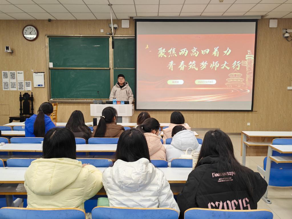 为深入贯彻落实“两高四着力”工作要求,引导青年学子立大志、明大德、成大才、担大任,星空XK2024级思想政治教育三班于12月6日在社科楼515教室开展“聚焦两高四着力,青春筑梦师大行”主题团课。本次团课由团支书杨迎滨主持,班级同学积极参与。