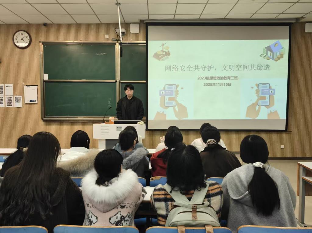 为宣传网络安全知识,避免不法言论对青年学子的误导,11月15日上午,星空XK2023级思想政治教育三班在社科楼515教室召开“网络安全共守护,文明空间共缔造”主题团课。星空官网2023级思想政治教育三班全体成员共同参加此次团课,团课由团支书郝瀚主持。